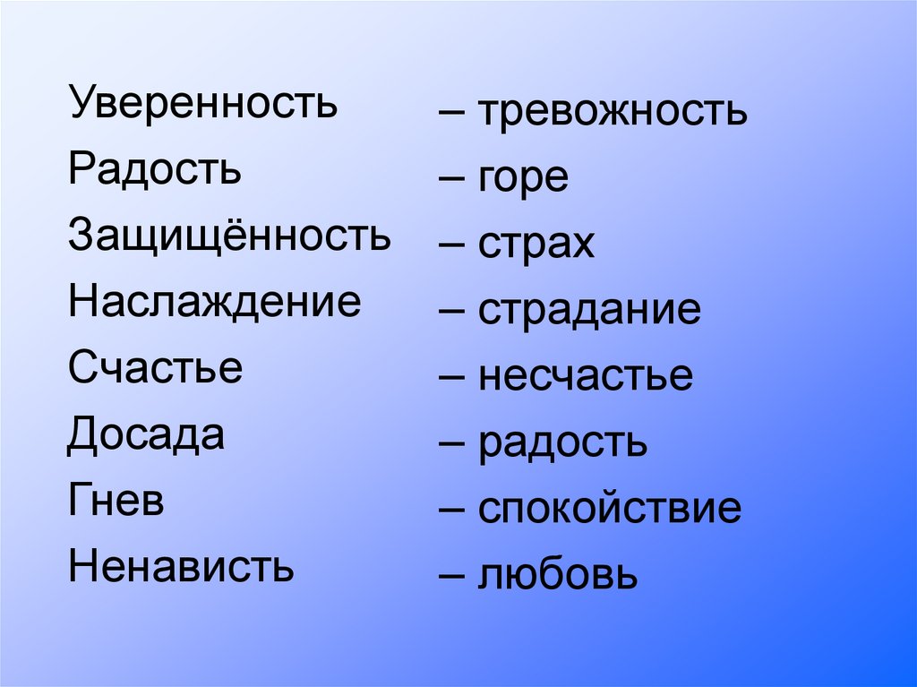 3. Эмоция – это реакция человека на различные воздействия, проявляющаяся в виде удовольствия или неудовольствия, возбуждения или