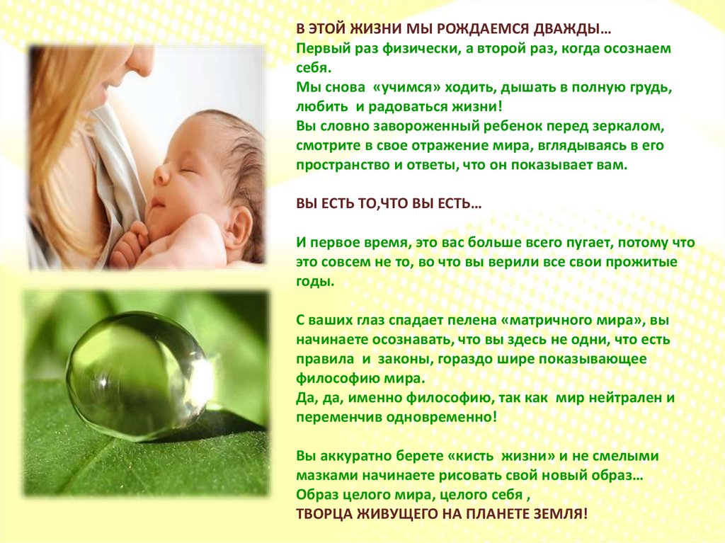В ЭТОЙ ЖИЗНИ МЫ РОЖДАЕМСЯ ДВАЖДЫ…Первый раз физически, а второй раз, когда осознаем