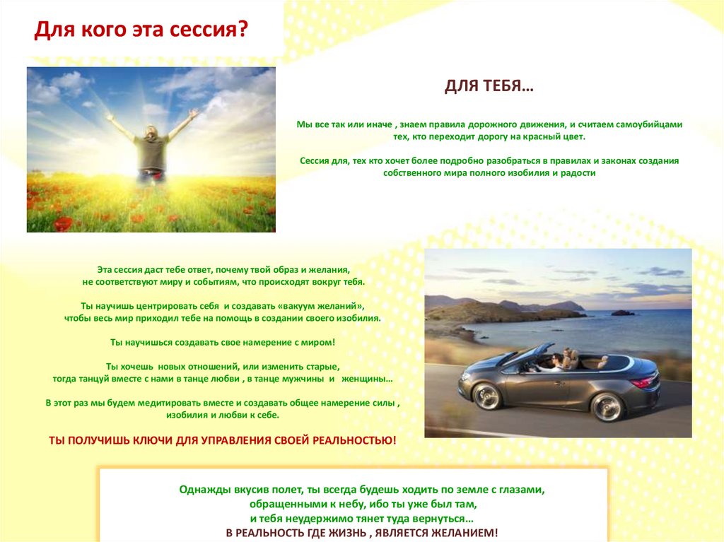 Два дня после сессии я летала ,словно в потоке теплого ветра удачи! Я ликовала от полноты