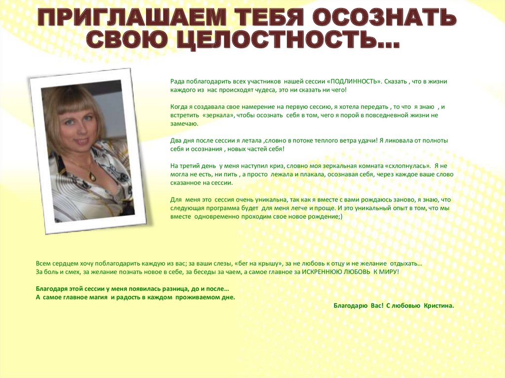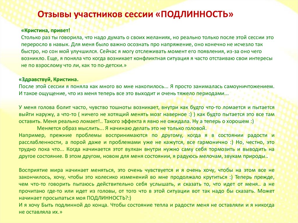 Отзывы участников сессии «ПОДЛИННОСТЬ»«Кристина, привет!