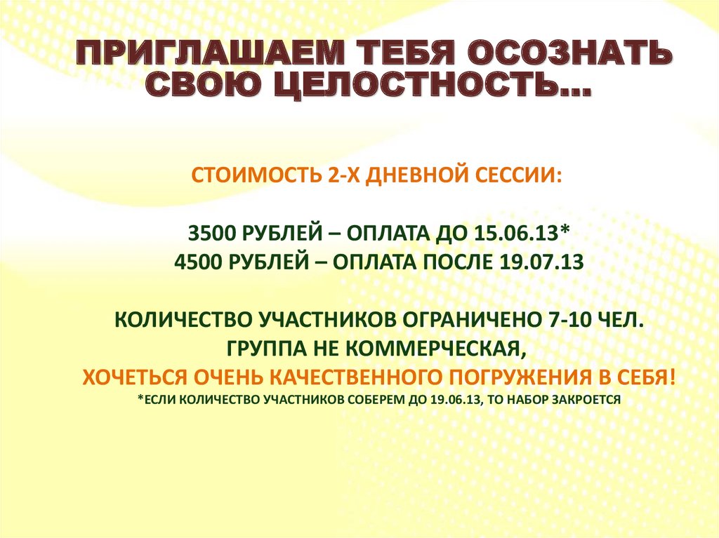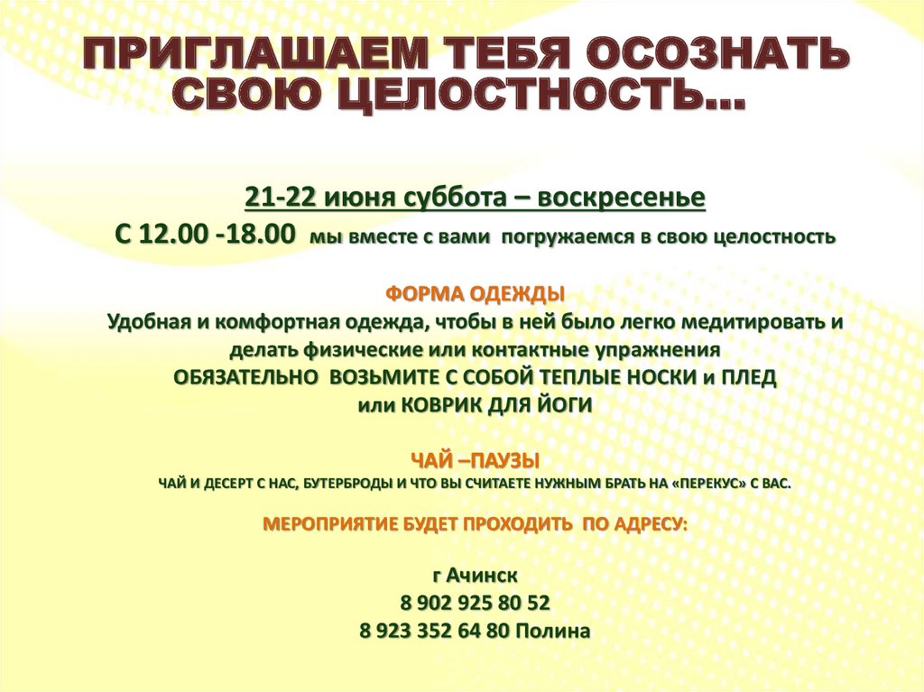 ПРИГЛАШАЕМ ТЕБЯ ОСОЗНАТЬСВОЮ ЦЕЛОСТНОСТЬ…