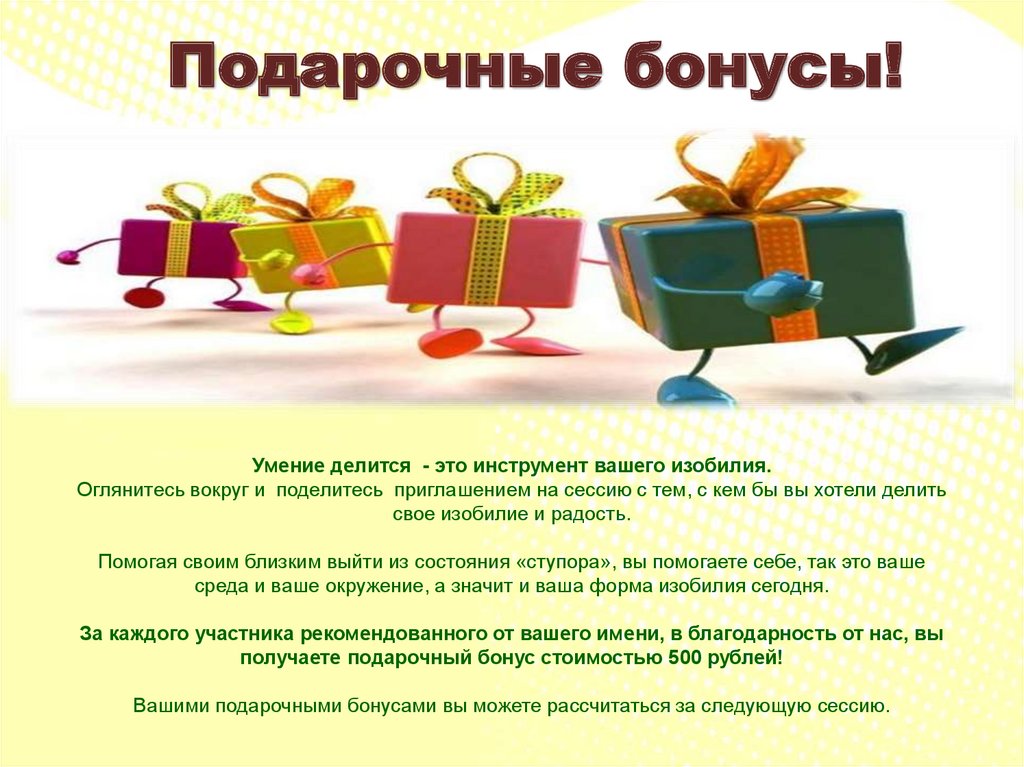 Подарочные бонусы!Умение делится - это инструмент вашего изобилия.