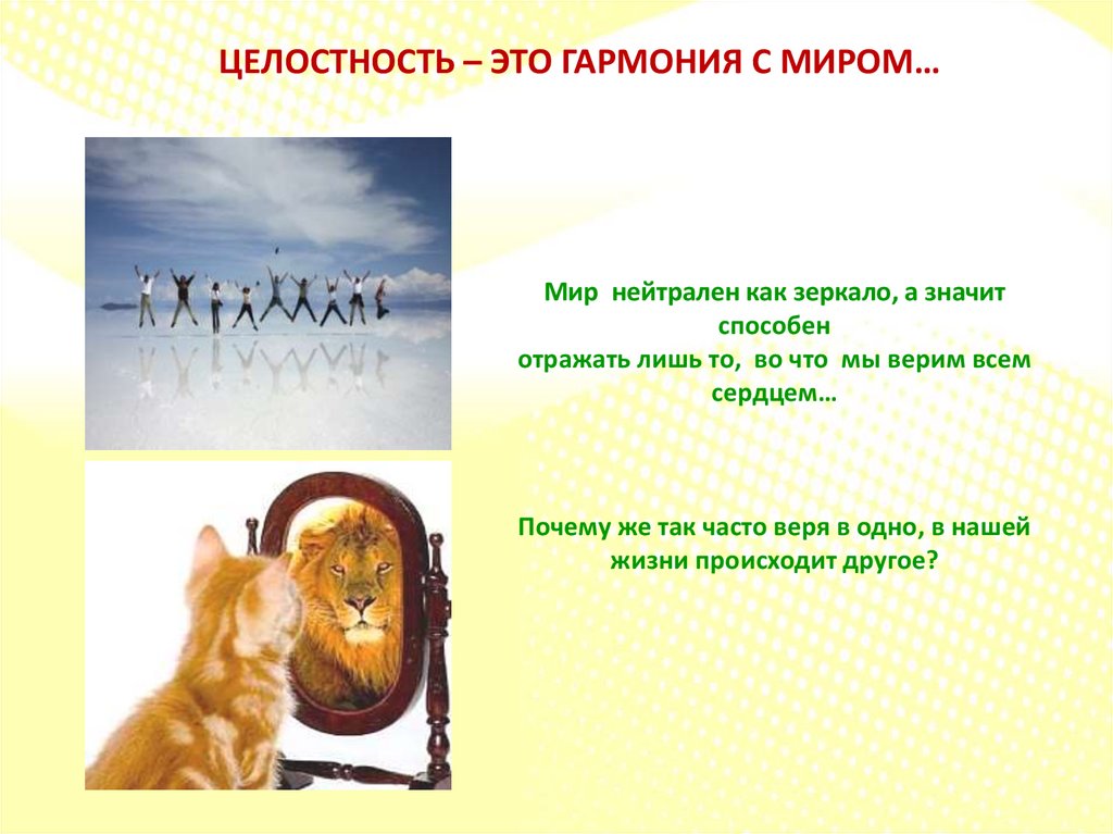 ЦЕЛОСТНОСТЬ – ЭТО ГАРМОНИЯ С МИРОМ…Мир нейтрален как зеркало, а значит