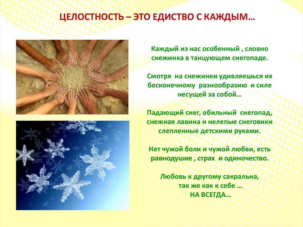 ЦЕЛОСТНОСТЬ – ЭТО ЕДИСТВО С КАЖДЫМ…Каждый из нас особенный , словно