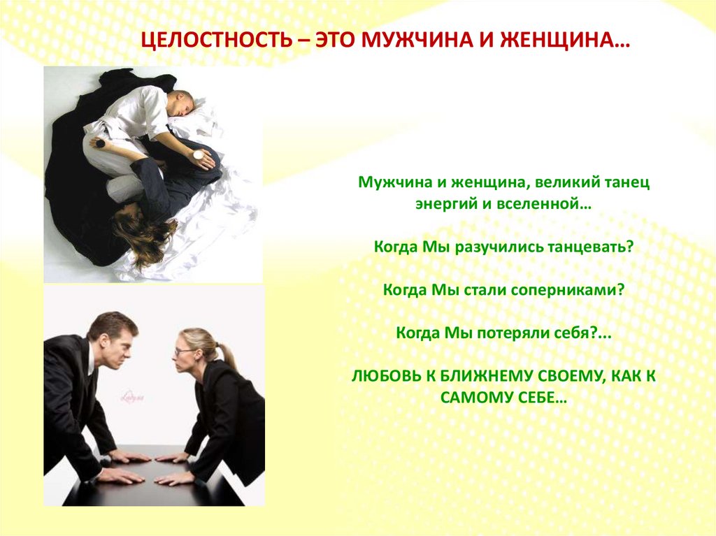 ЦЕЛОСТНОСТЬ – ЭТО МУЖЧИНА И ЖЕНЩИНА…Мужчина и женщина, великий танец