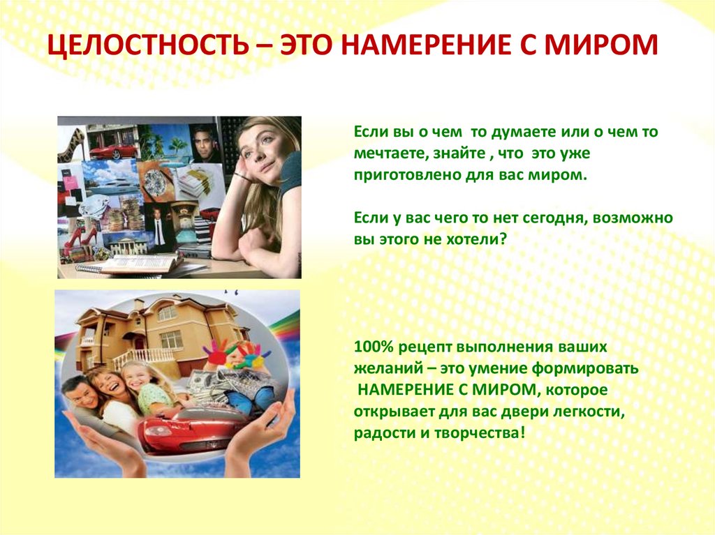 ЦЕЛОСТНОСТЬ – ЭТО НАМЕРЕНИЕ С МИРОМЕсли вы о чем то думаете или о чем то