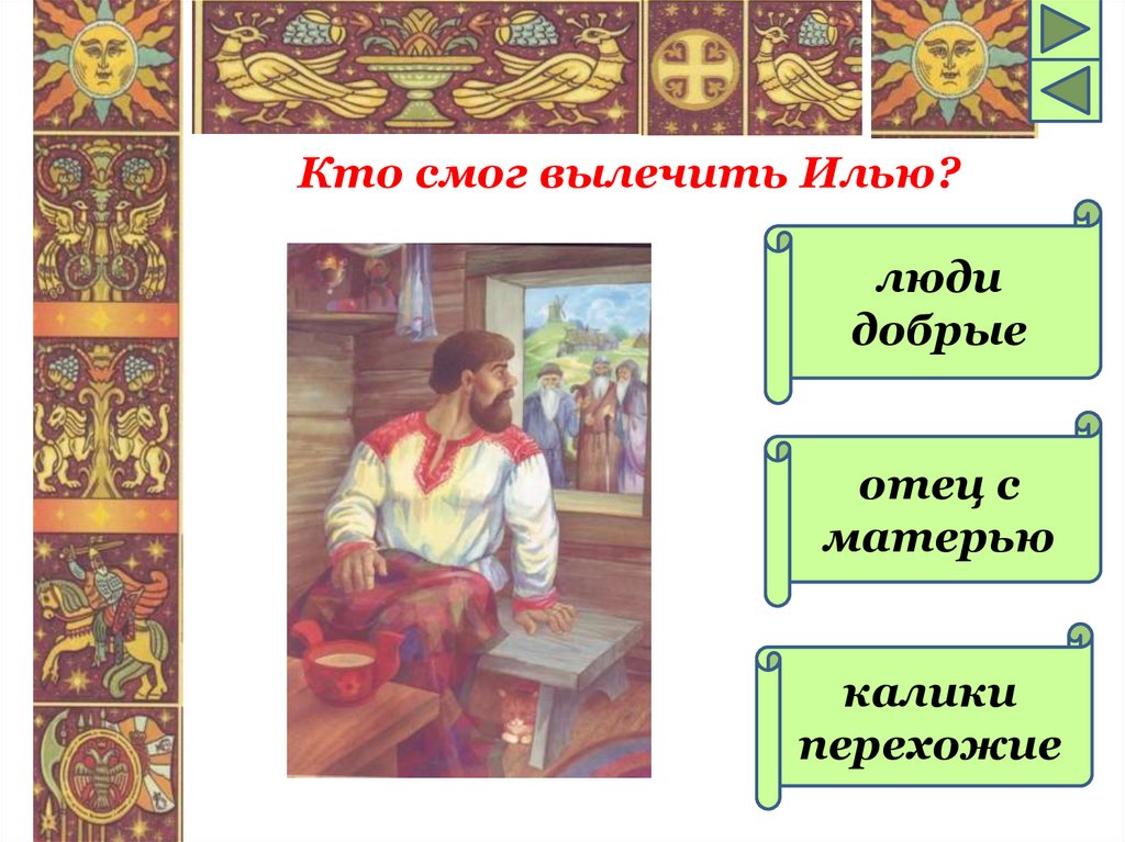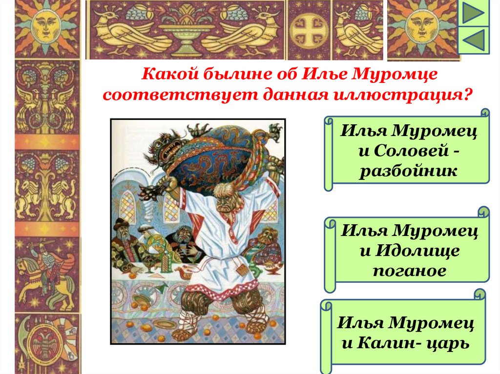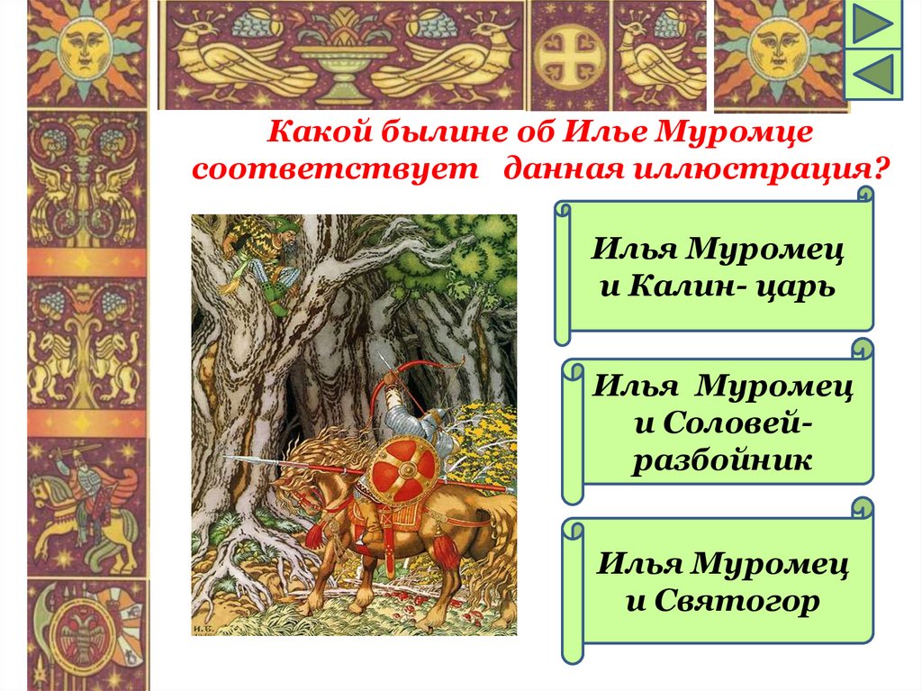 Какой былине об Илье Муромцесоответствует данная иллюстрация?