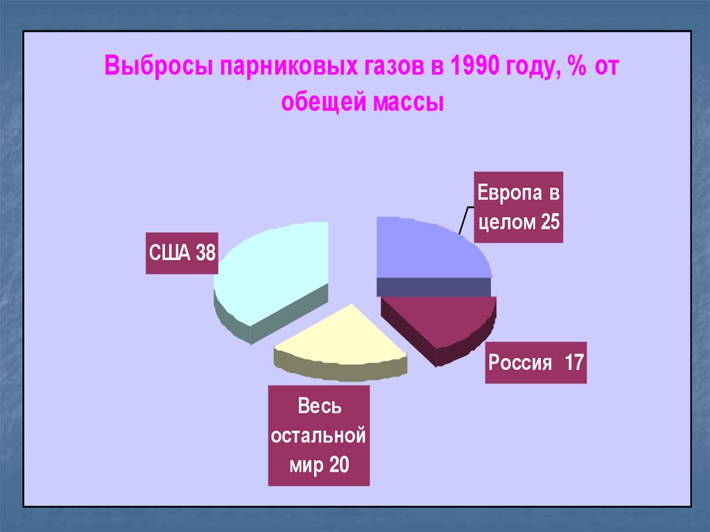 Выбросы парниковых газов в 1990 году, % отобещей массы