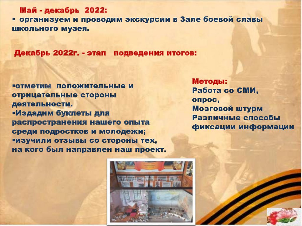 Май - декабрь 2022:организуем и проводим экскурсии в Зале боевой славы