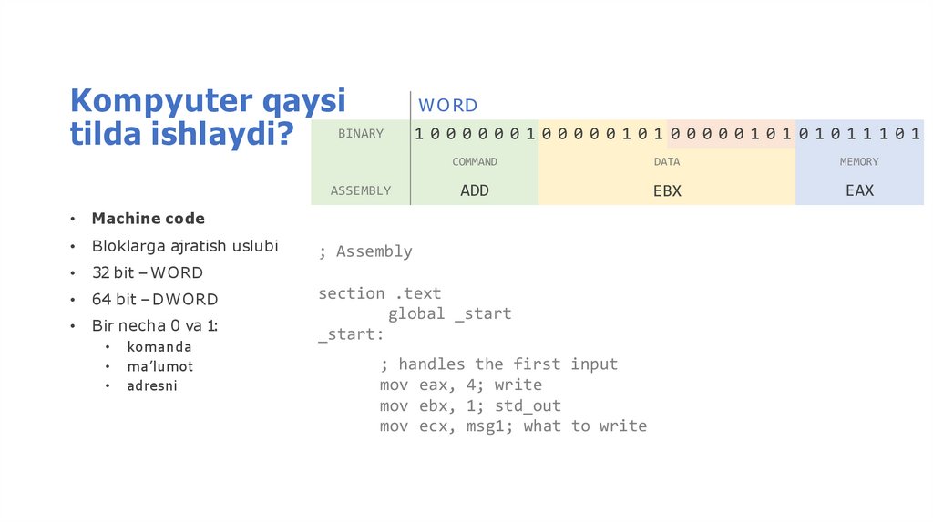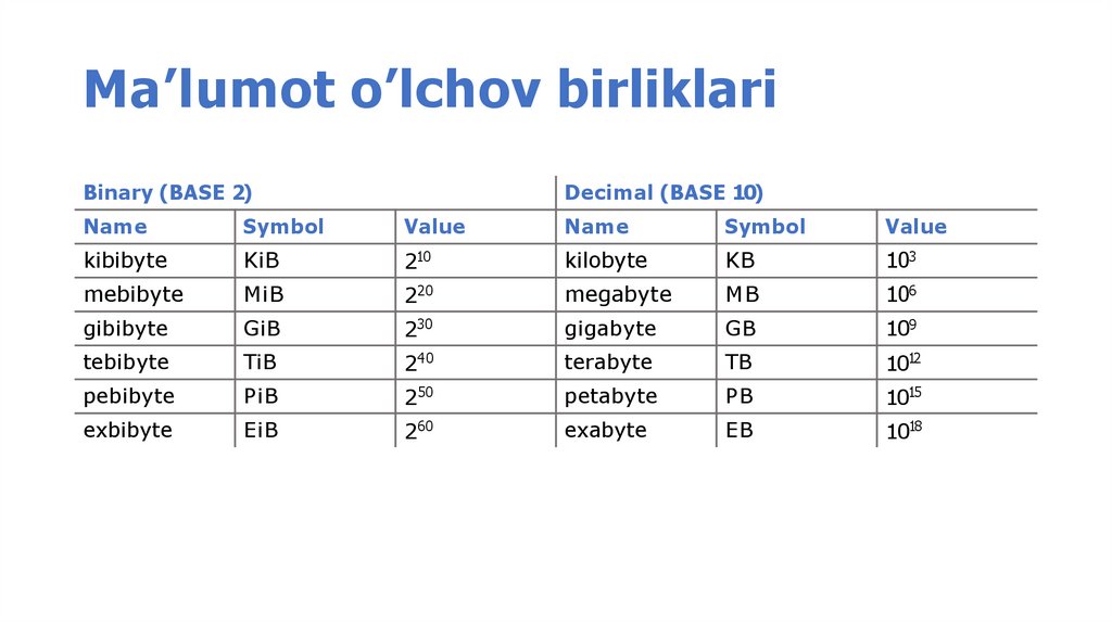 Data representationKompyuter ma’lumotlarni qanday ko’rinishda ko’radi?