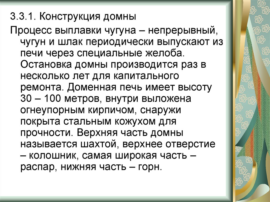 3.3.1. Конструкция домныПроцесс выплавки чугуна – непрерывный,