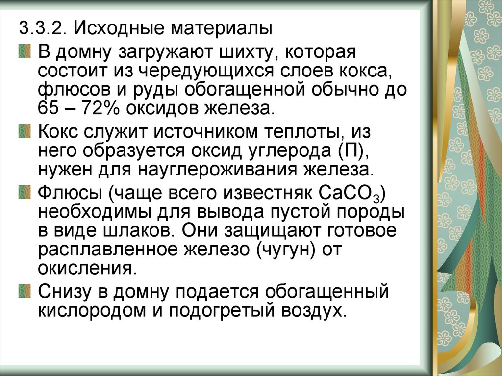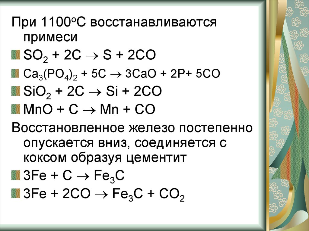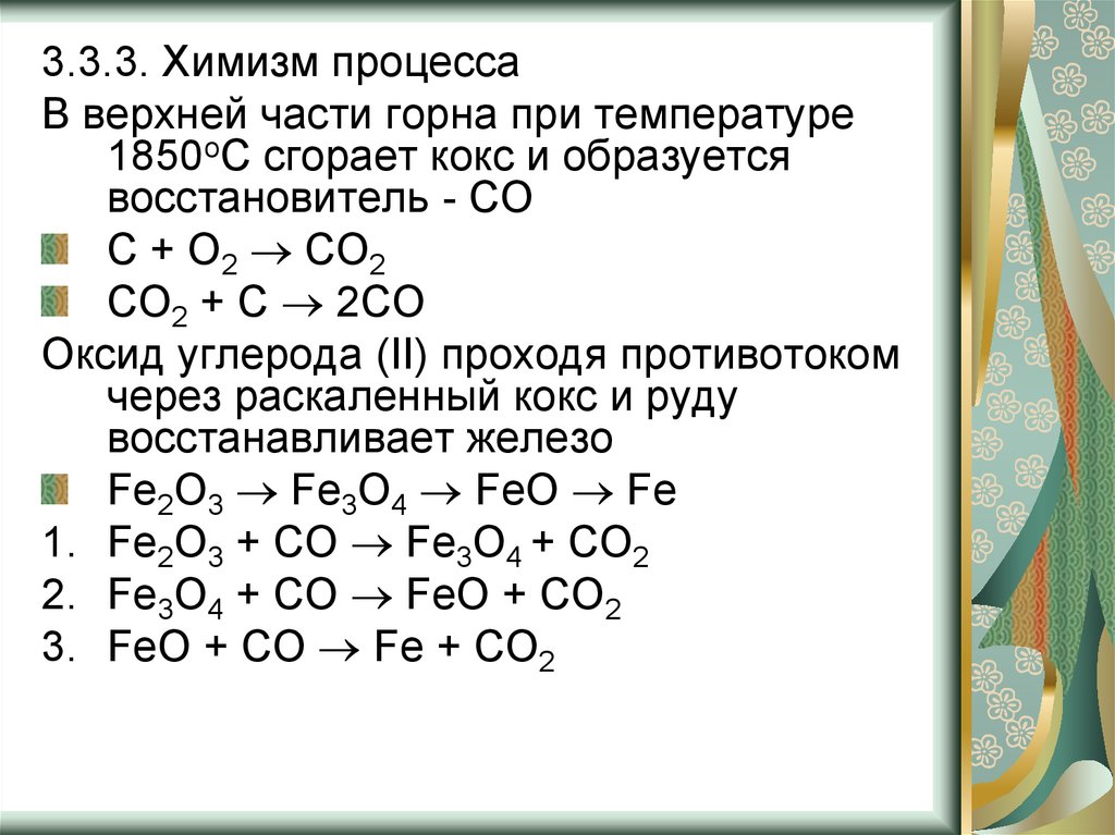 3.3.3. Химизм процессаВ верхней части горна при температуре