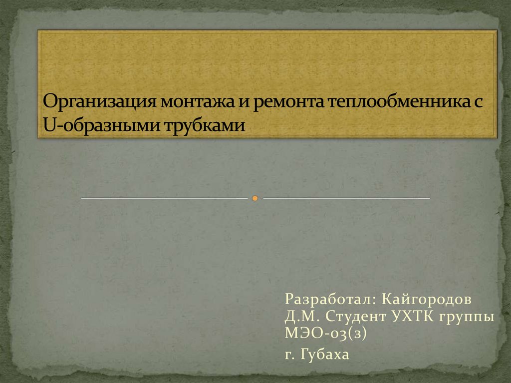 1. Организация монтажа и ремонта теплообменника с U-образными трубками