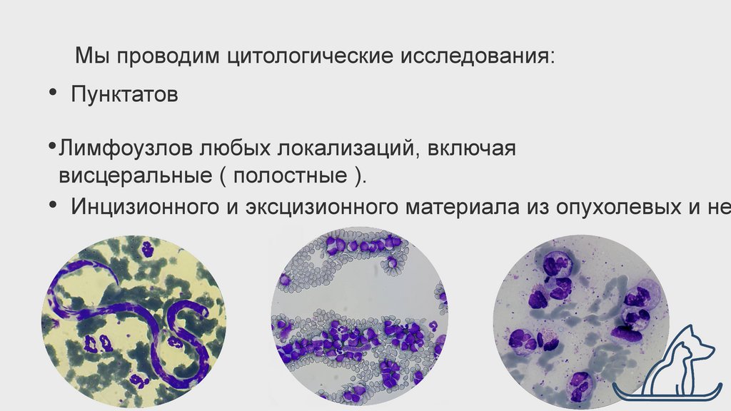 Мы проводим цитологические исследования:• Пунктатов
