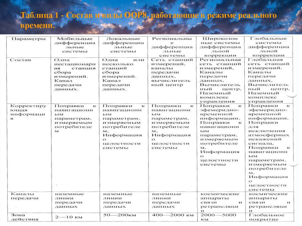 Таблица 1 - Состав и виды ООР8, работающие в режиме реальноговремени.
