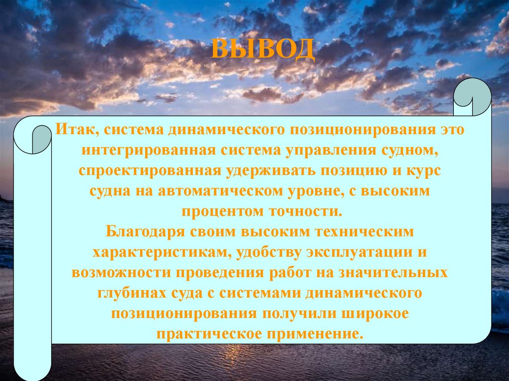 ВЫВОДИтак, система динамического позиционирования это