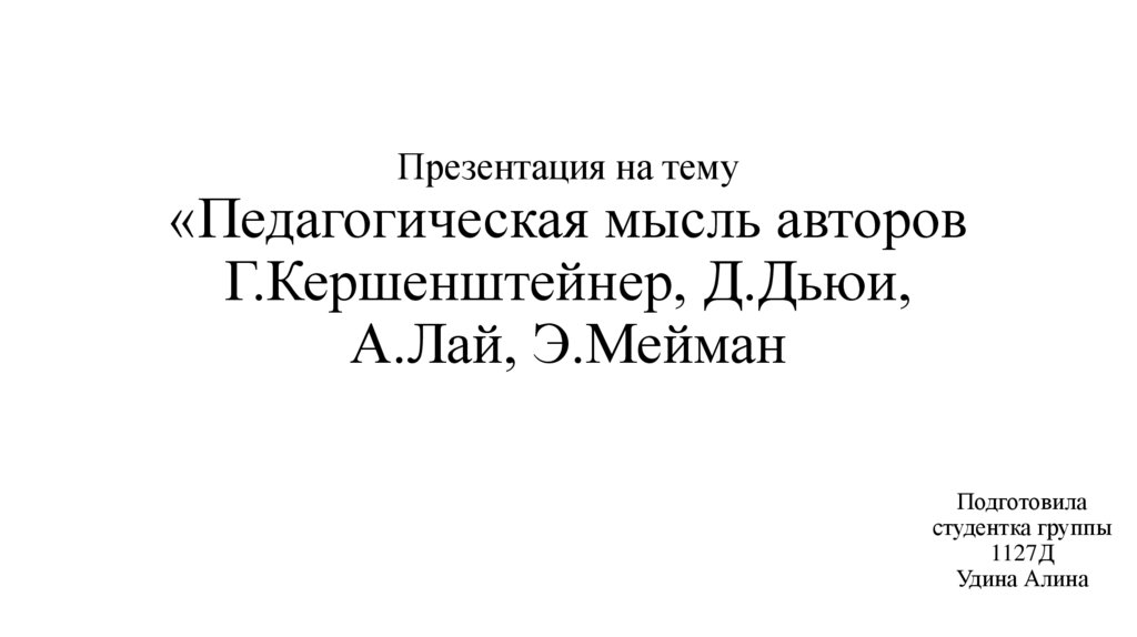 1. Презентация на тему «Педагогическая мысль авторов Г.Кершенштейнер, Д.Дьюи, А.Лай, Э.Мейман