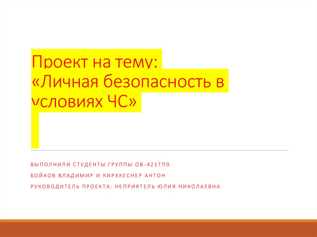 1. Проект на тему: «Личная безопасность в условиях ЧС»