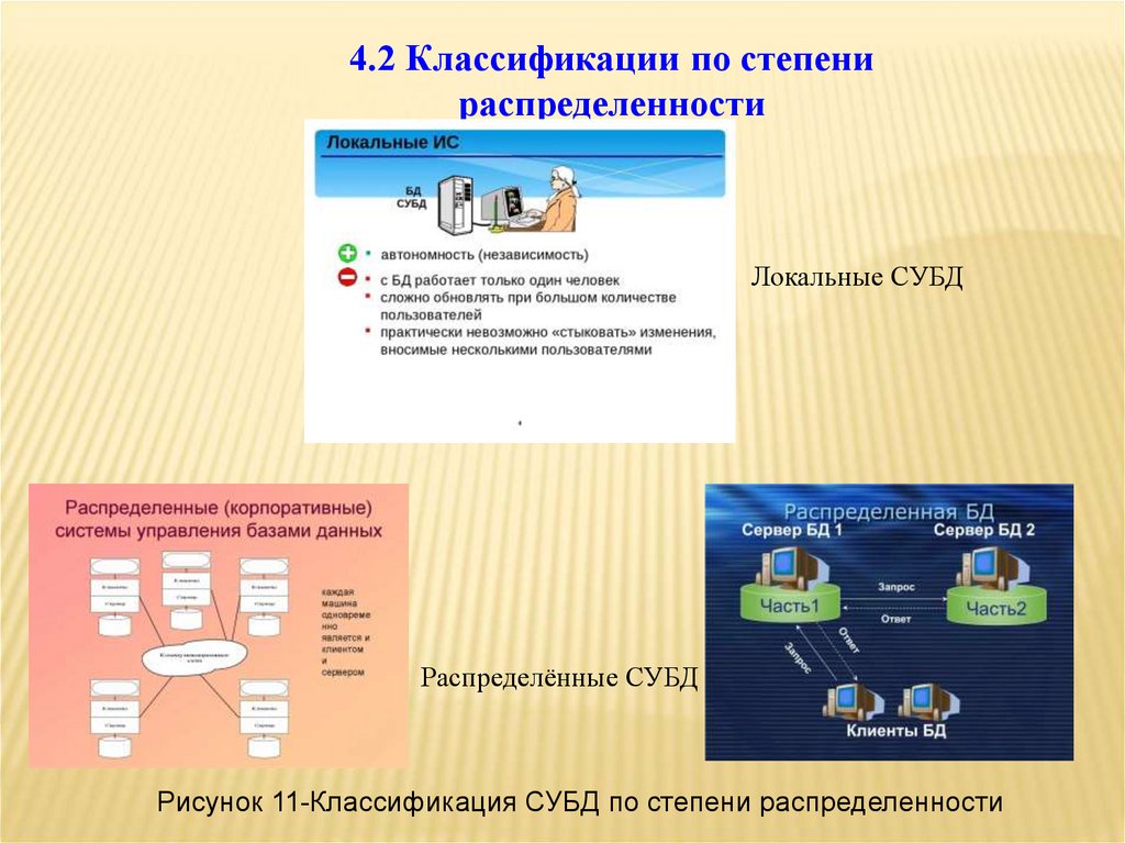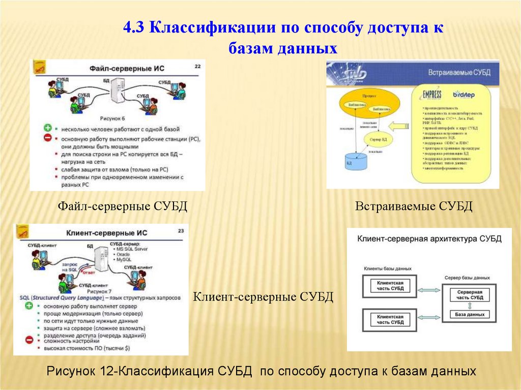 Рисунок 12-Классификация СУБД по способу доступа к базам данных