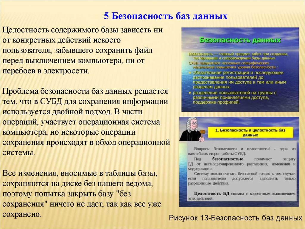 5 Безопасность баз данныхЦелостность содержимого базы зависеть ни