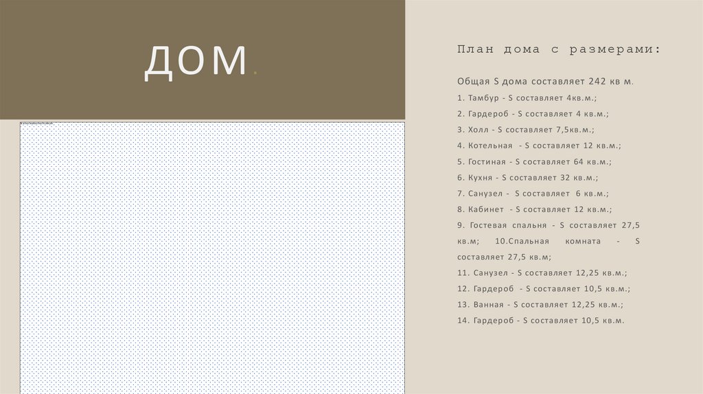 Общая S дома составляет 242 кв м .