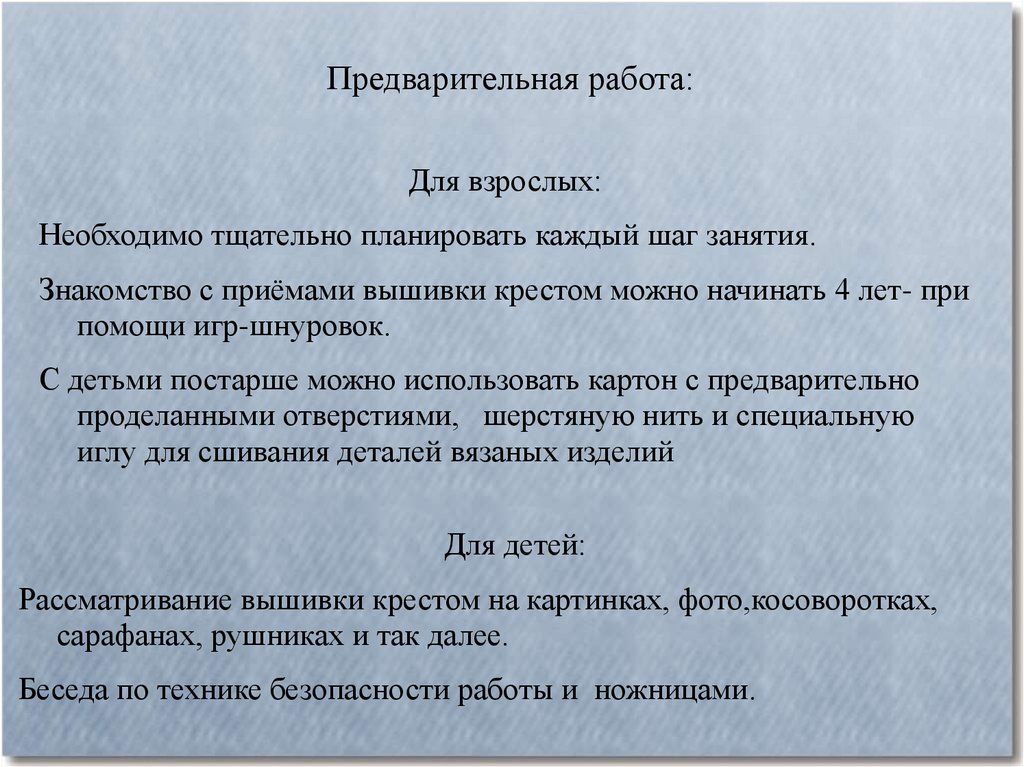 Знакомство с приёмами вышивки крестом можно начинать 4 лет- при