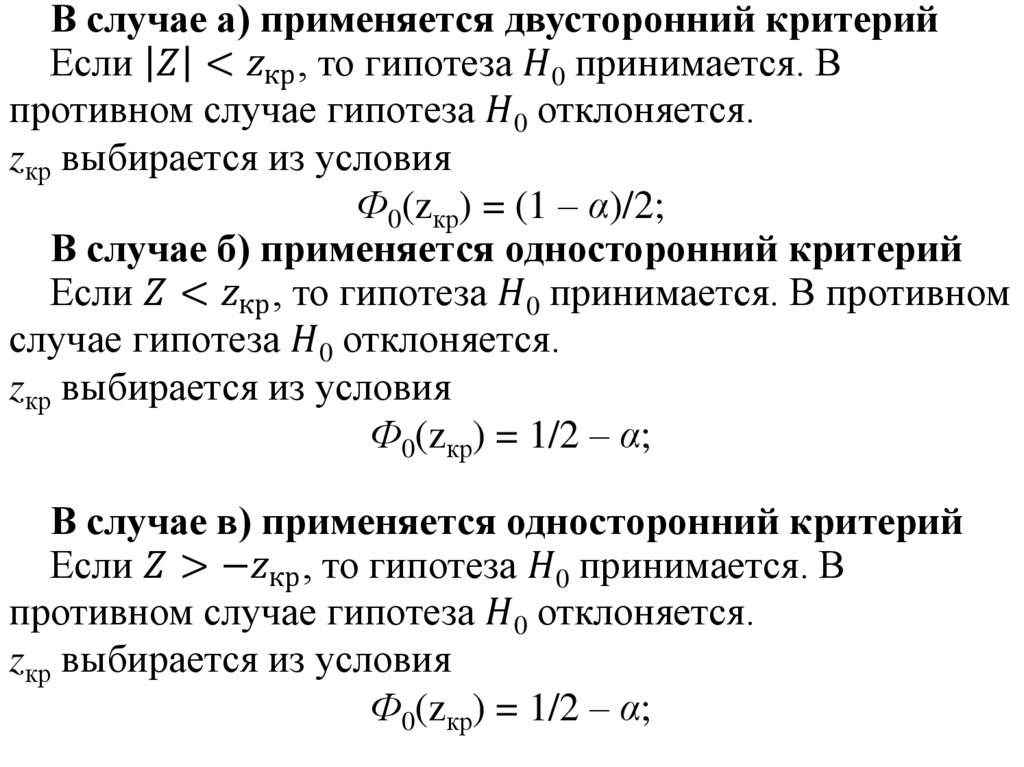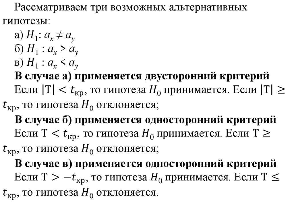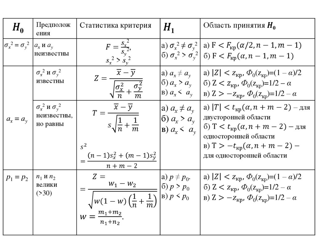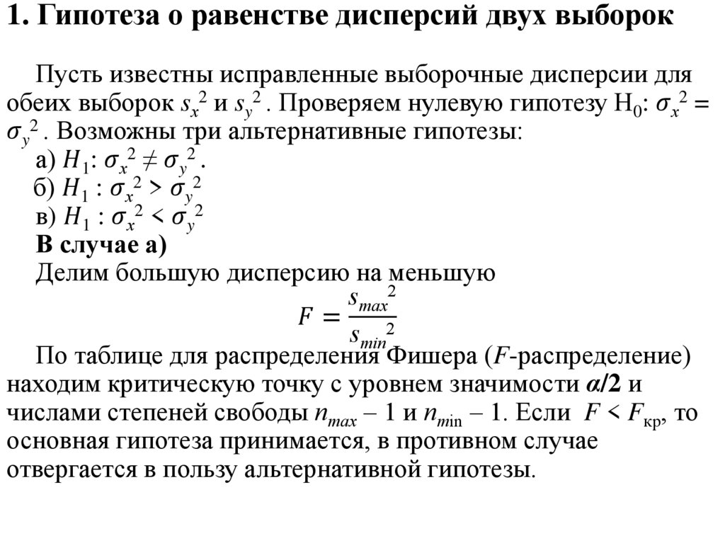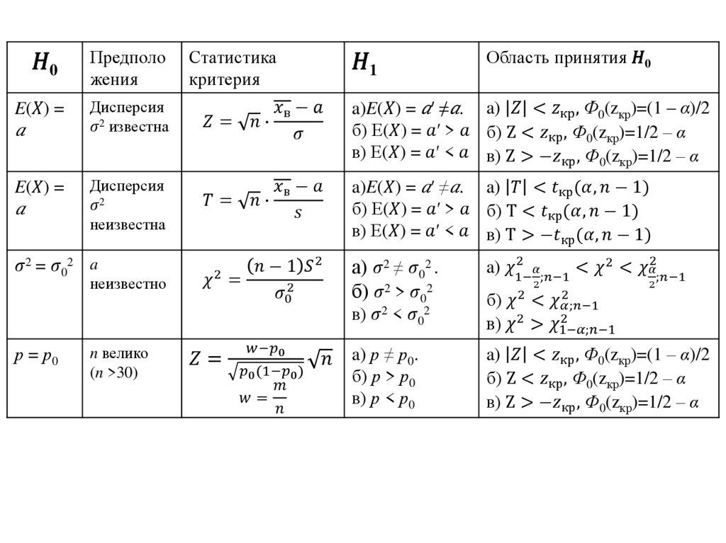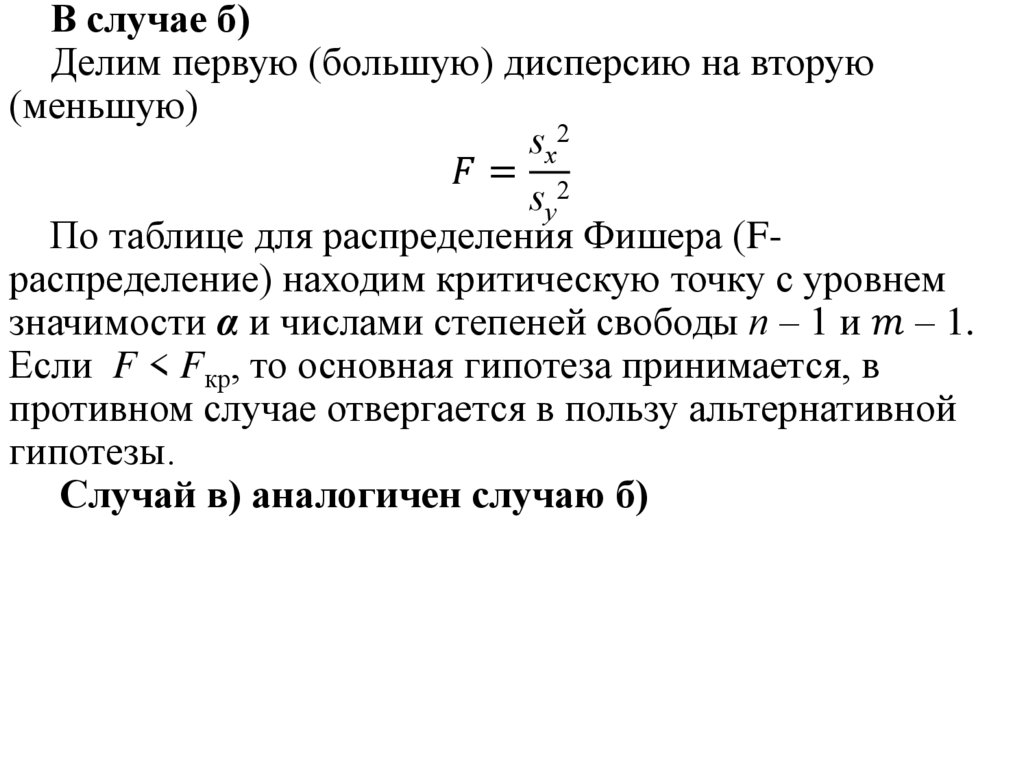 Гипотеза о неизвестной дисперсии Ϭ2