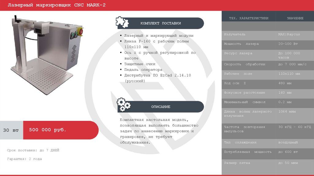 Лазерный маркировщик CNC MARK-2ТЕХ. ХАРАКТЕРИСТИКИ
