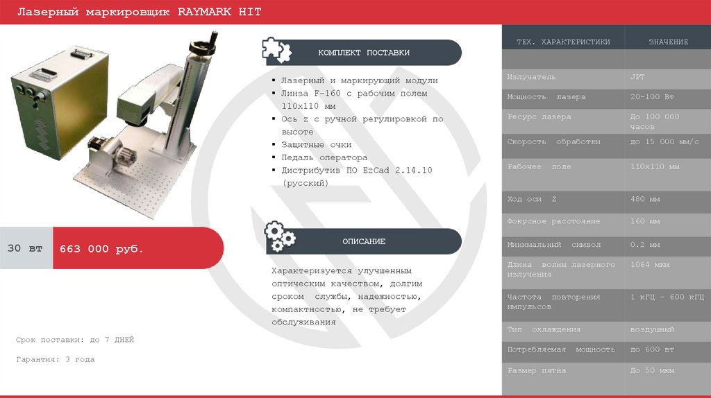 Лазерный маркировщик RAYMARK HITТЕХ. ХАРАКТЕРИСТИКИ