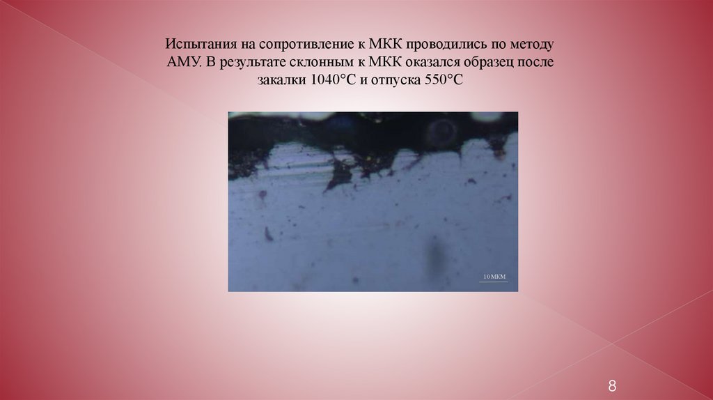 Испытания на сопротивление к МКК проводились по методуАМУ. В результате склонным к МКК оказался образец после