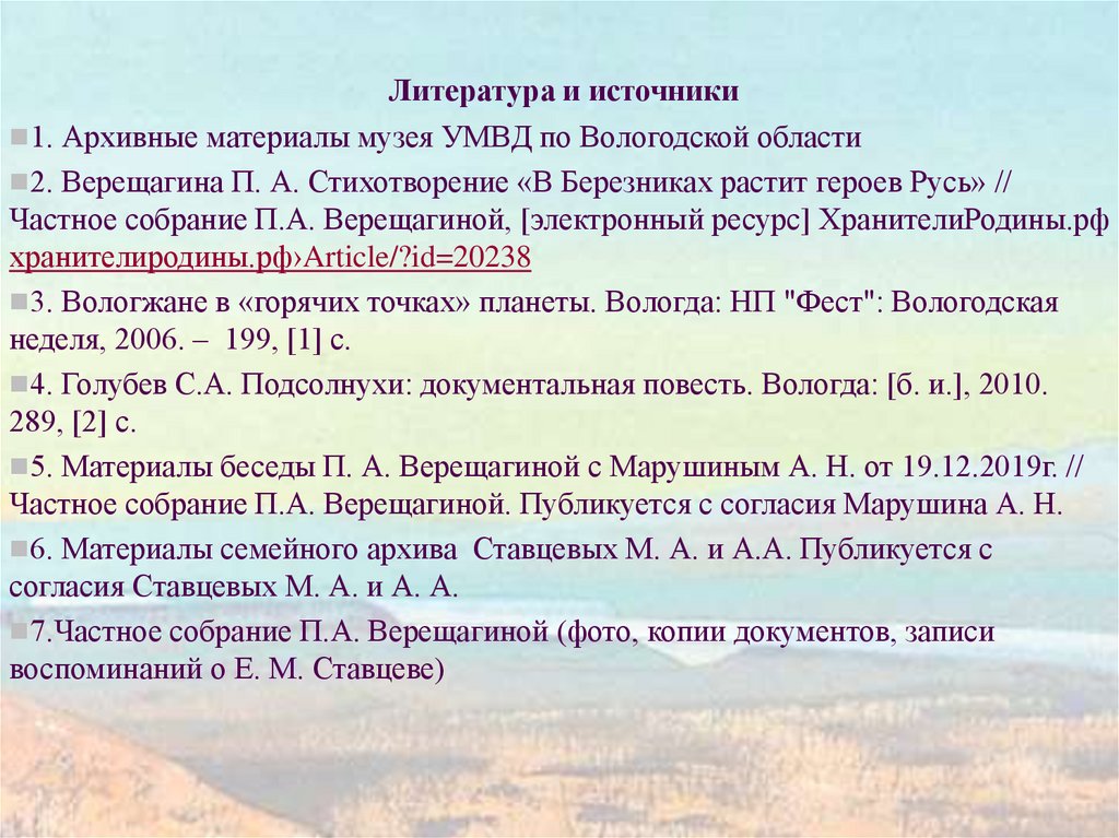 Литература и источники1. Архивные материалы музея УМВД по Вологодской области