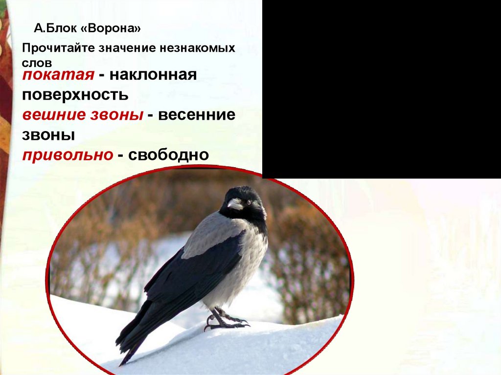 А.Блок «Ворона»Прочитайте значение незнакомых