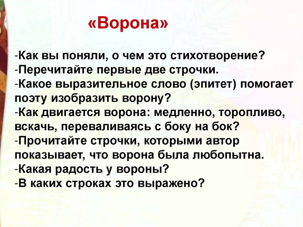 «Ворона»-Как вы поняли, о чем это стихотворение?
