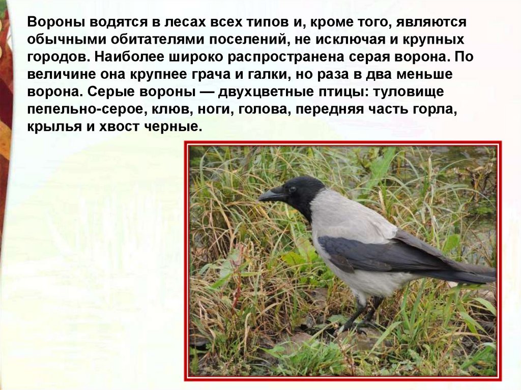 Вороны водятся в лесах всех типов и, кроме того, являютсяобычными обитателями поселений, не исключая и крупных