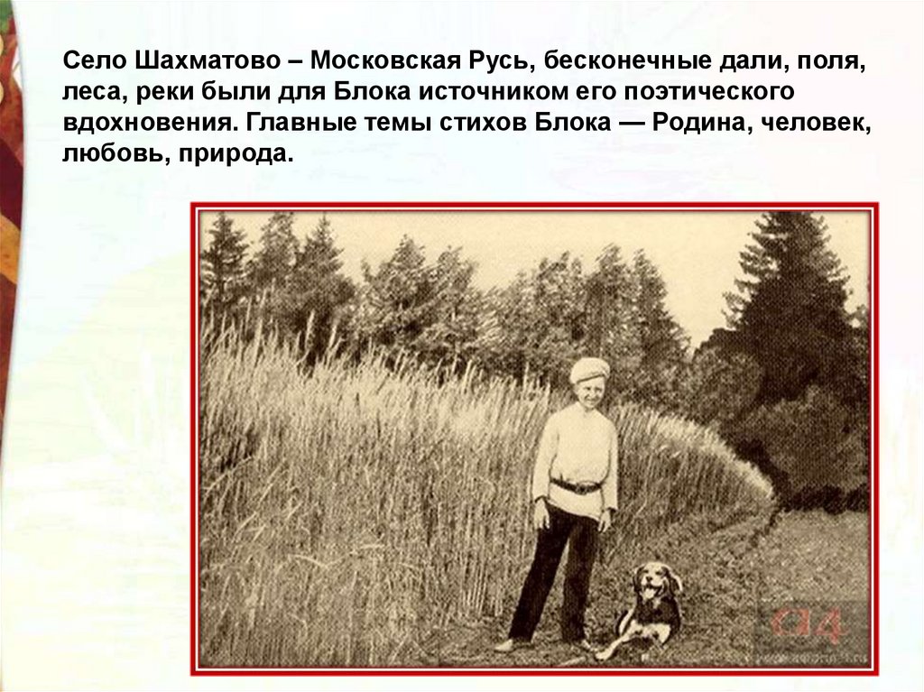 Село Шахматово – Московская Русь, бесконечные дали, поля,леса, реки были для Блока источником его поэтического