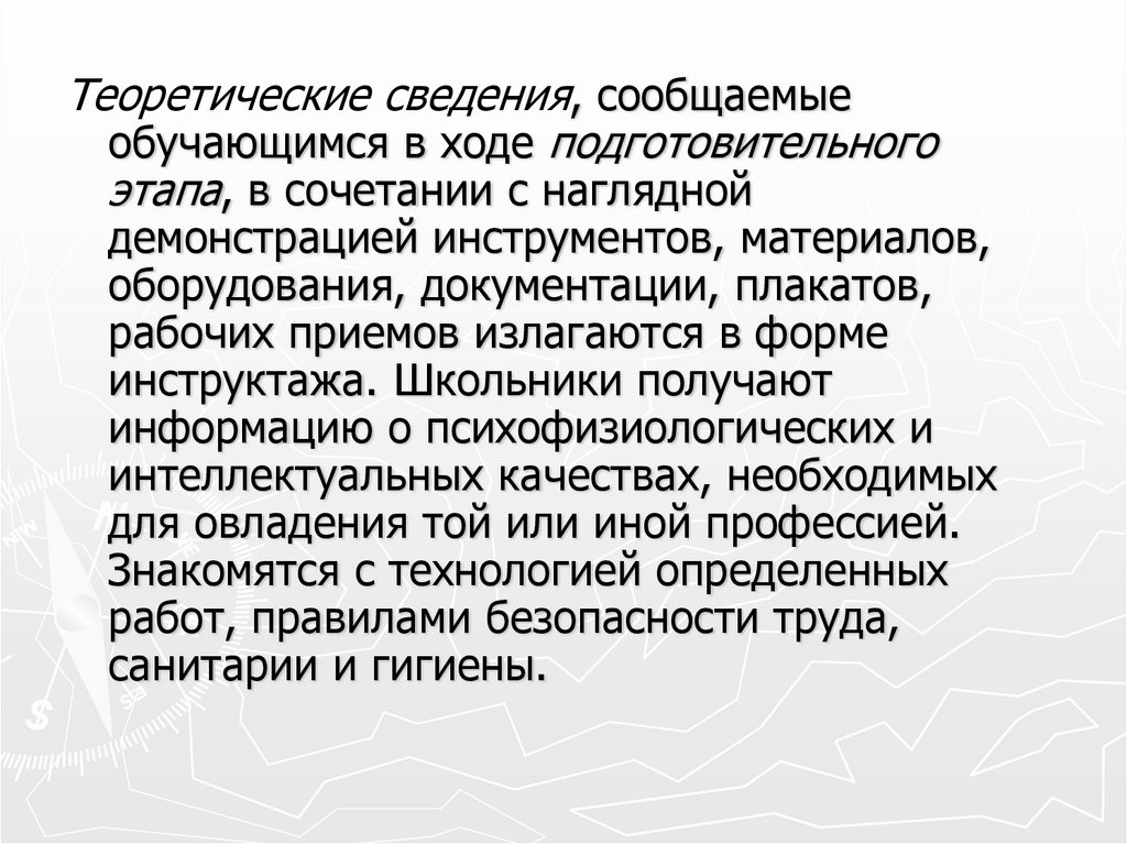 Теоретические сведения, сообщаемыеобучающимся в ходе подготовительного