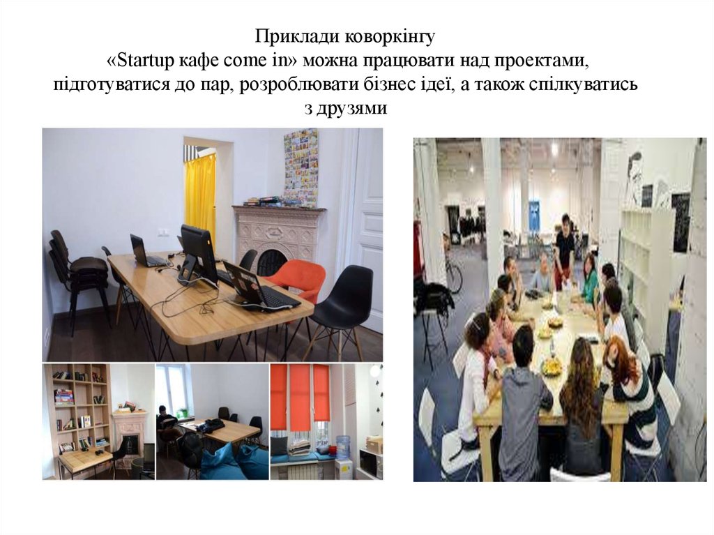 Приклади коворкінгу«Startup кафе come in» можна працювати над проектами,