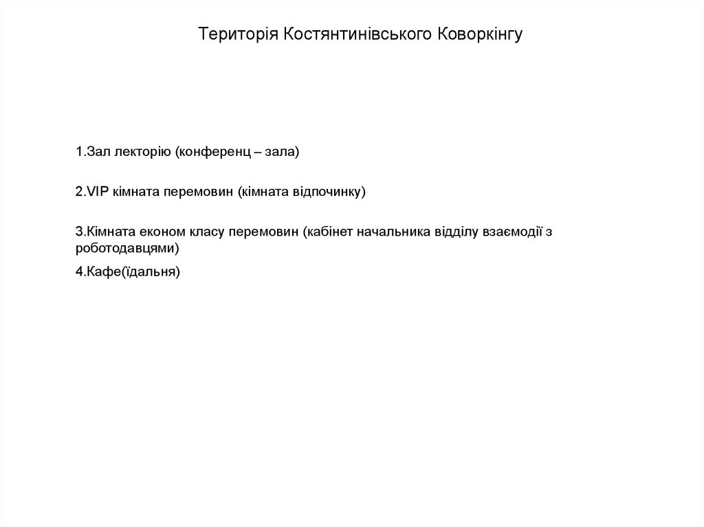 Територія Костянтинівського Коворкінгу1.Зал лекторію (конференц – зала)