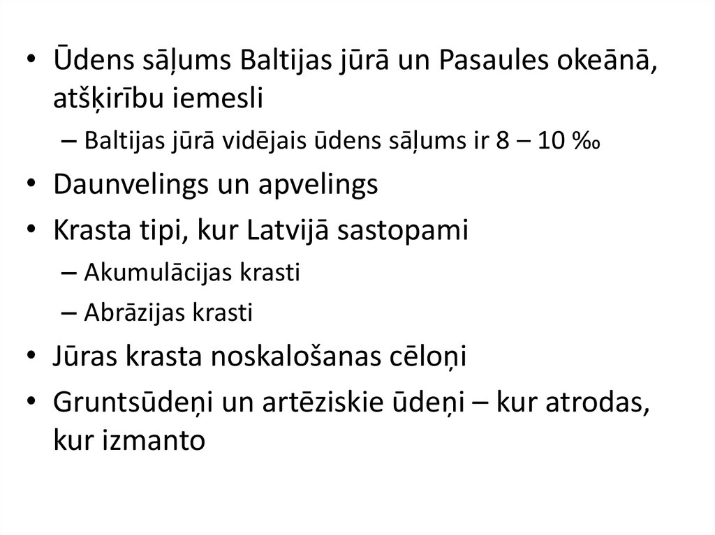 • Ūdens sāļums Baltijas jūrā un Pasaules okeānā,atšķirību iemesli