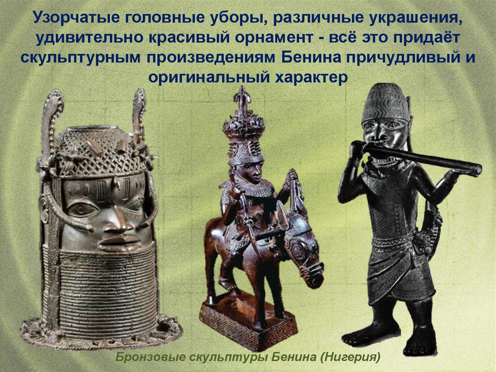 скульптурным произведениям Бенина причудливый и
