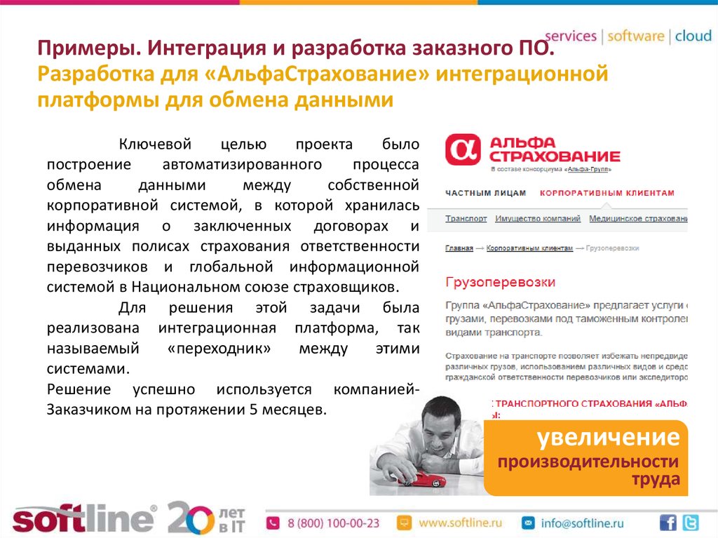 Примеры. Интеграция и разработка заказного ПО.Разработка для «АльфаСтрахование» интеграционной