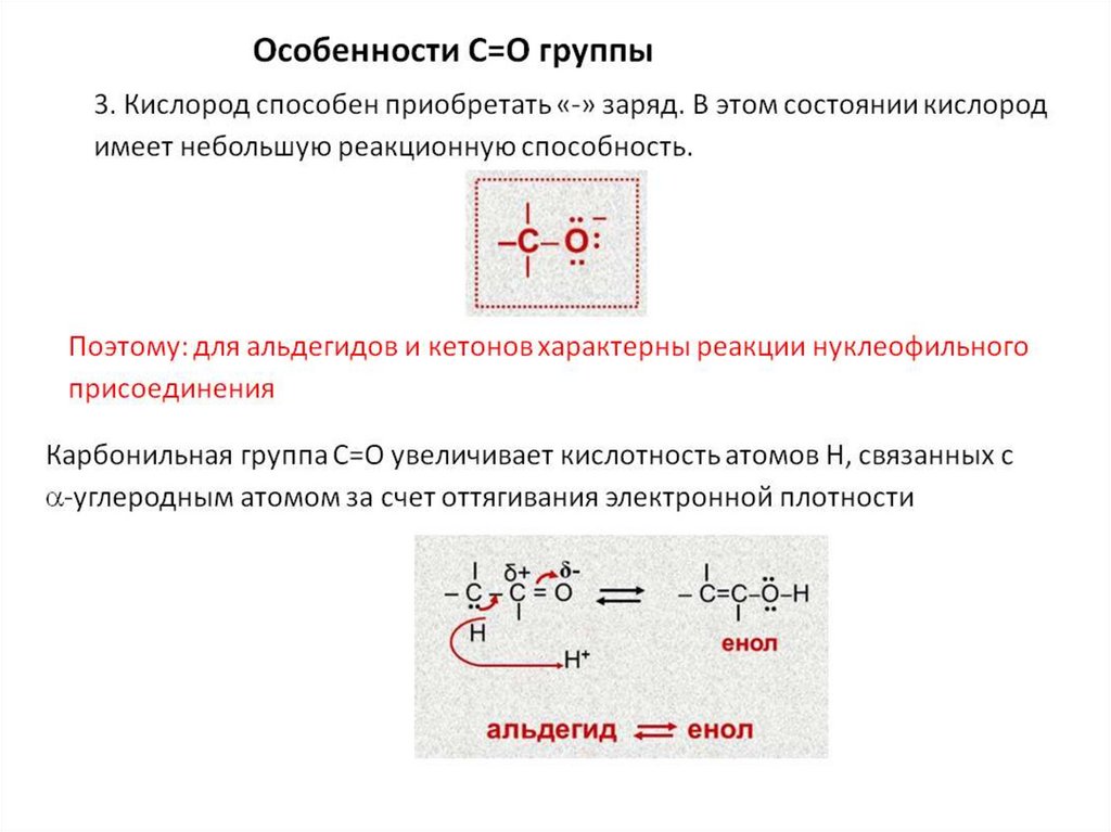 Особенности С=О группы: