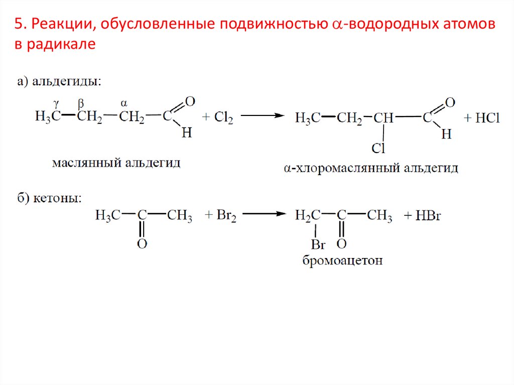 5. Реакции, обусловленные подвижностью -водородных атомовв радикале