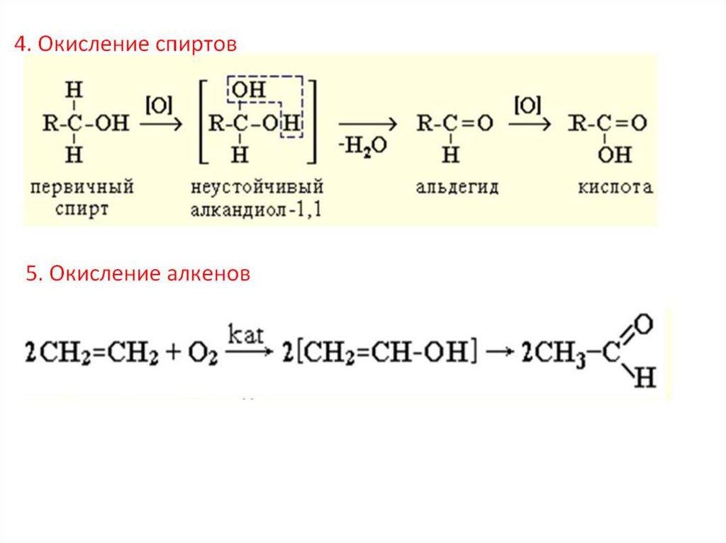 - реакции окисления протекают без изменения длины углеродной цепи, а