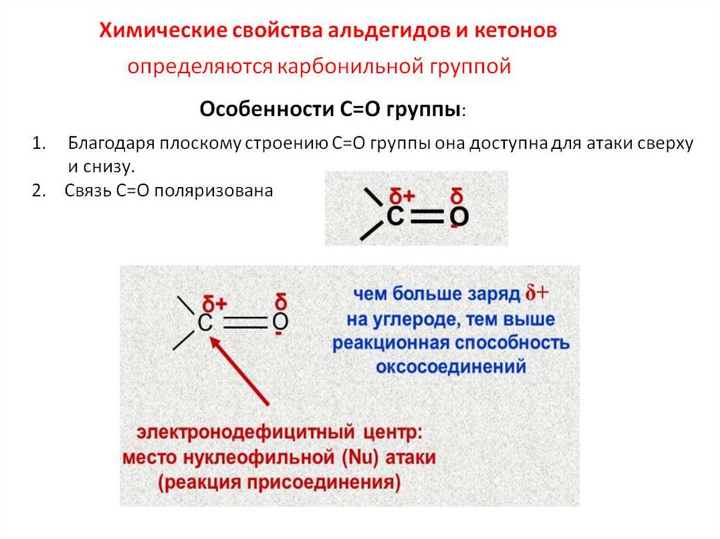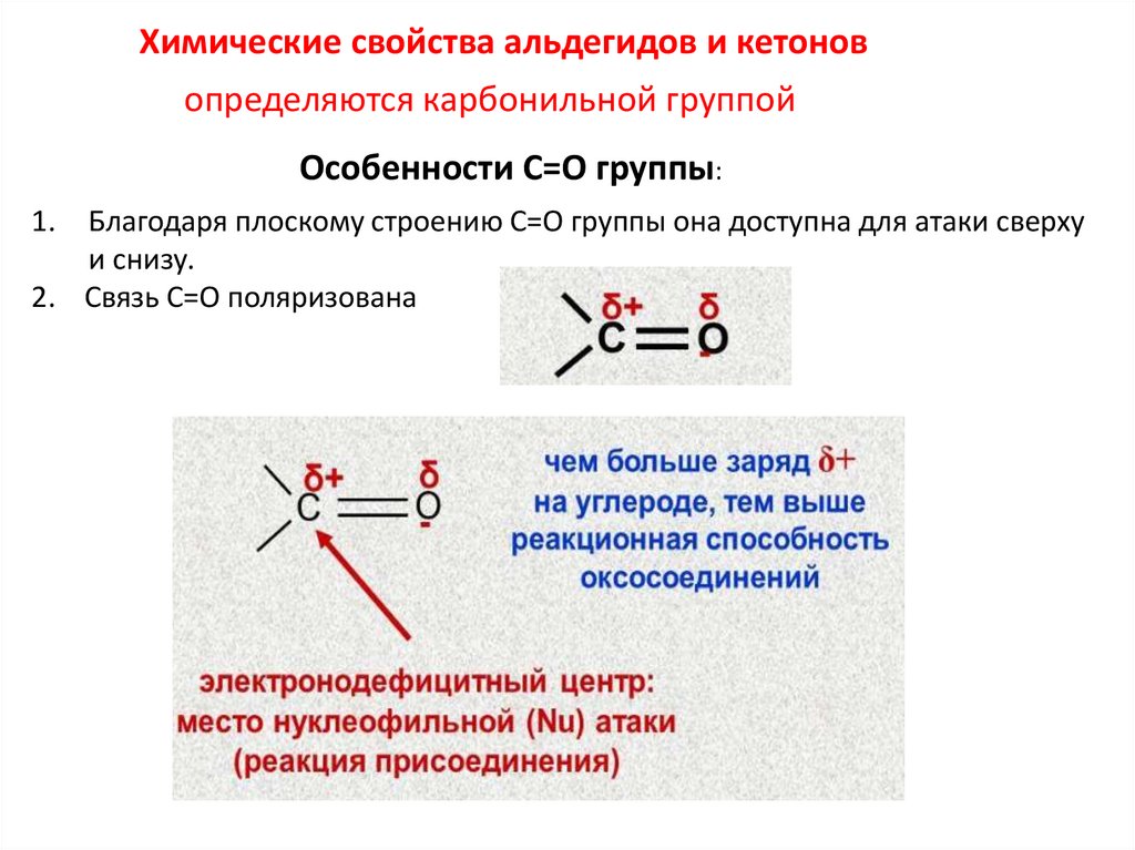 Химические свойства альдегидов и кетоновопределяются карбонильной группой