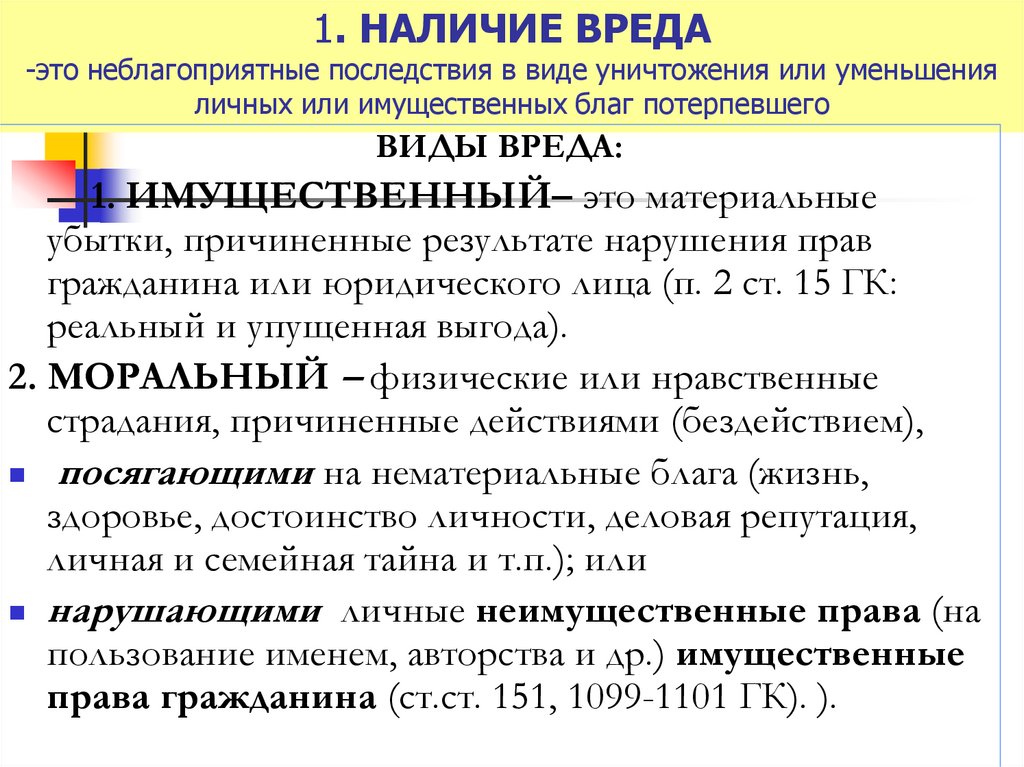 причинения вреда ;