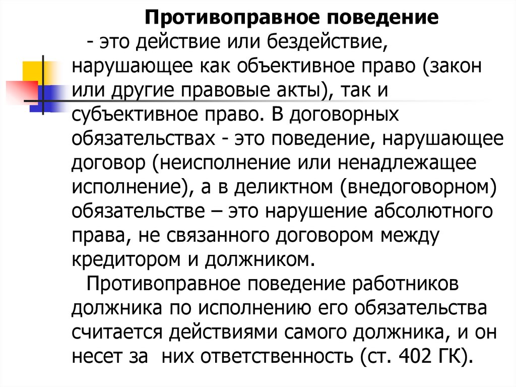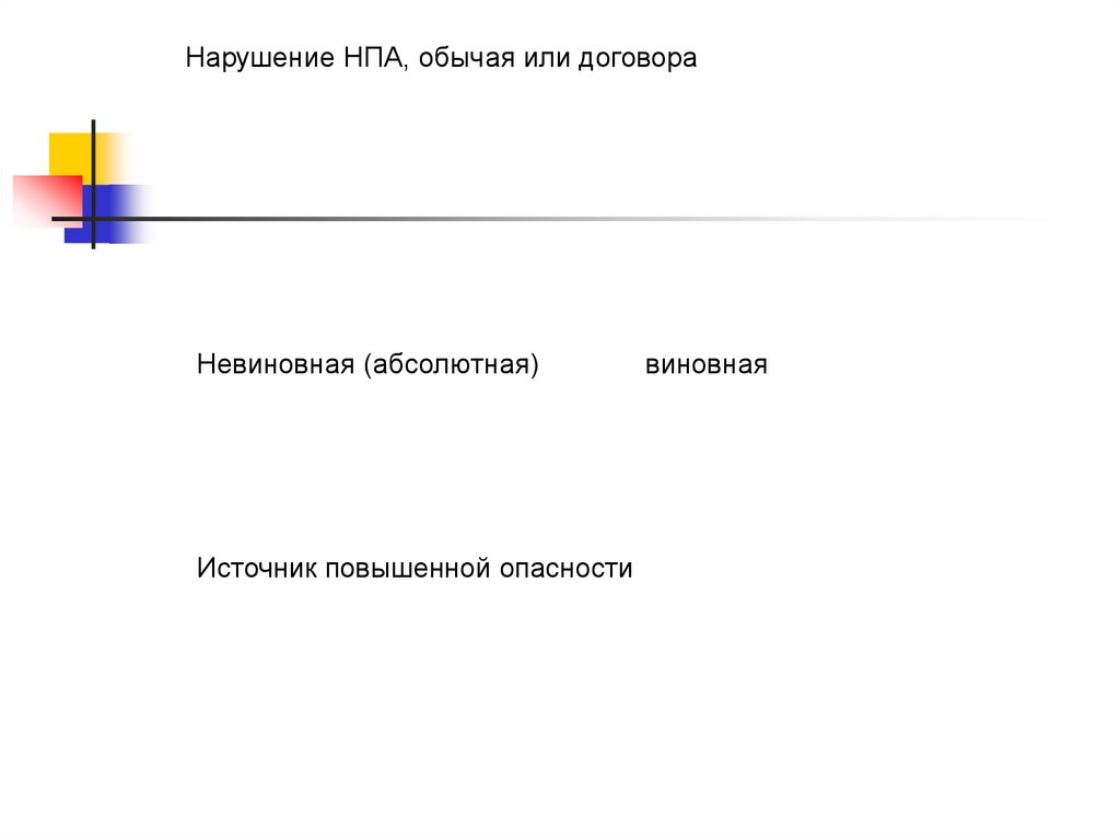 Нарушение НПА, обычая или договораНевиновная (абсолютная)
