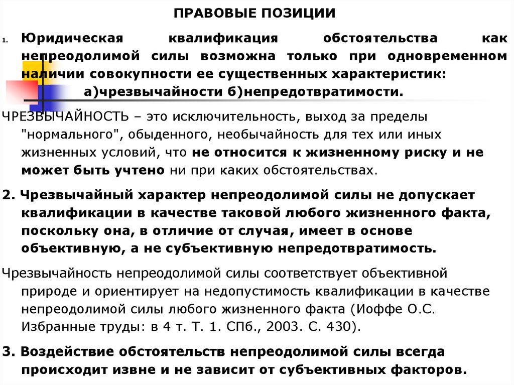 непреодолимой силы любого жизненного факта (Иоффе О.С.