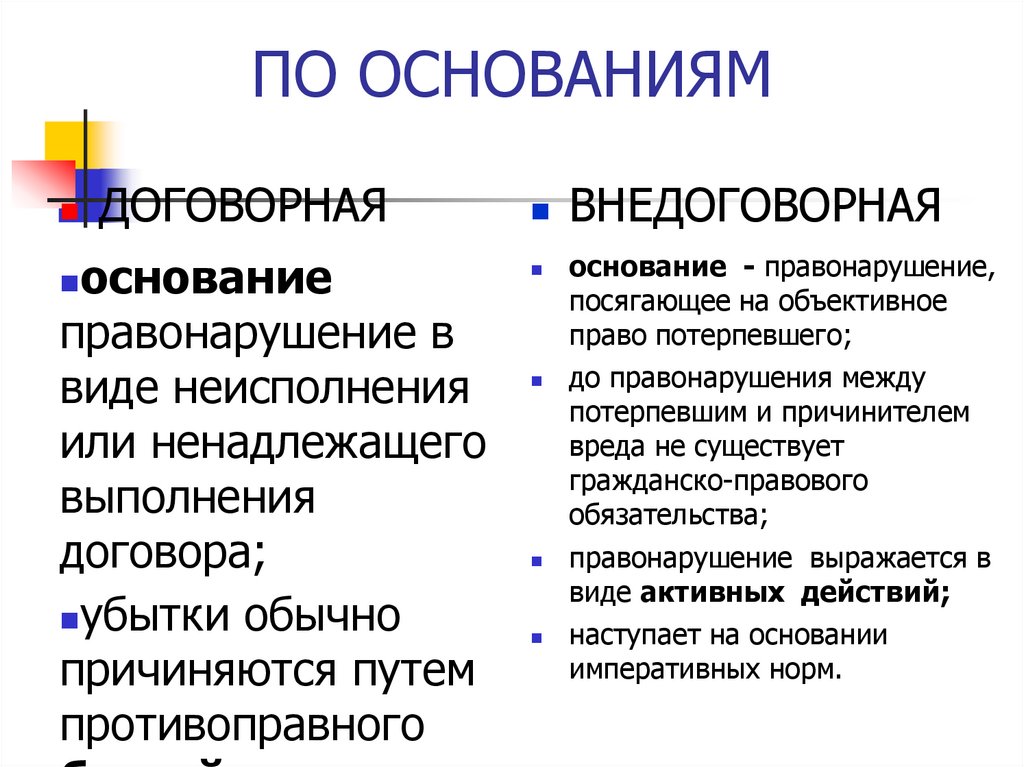 ПО ОСНОВАНИЯМДОГОВОРНАЯ