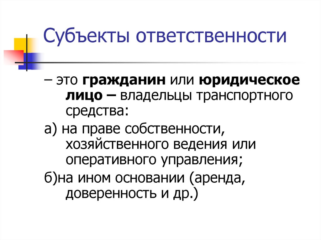 Субъекты ответственности– это гражданин или юридическое